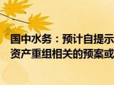国中水务发布关于筹划重大资产重组事项的补充公告,公司对“披露重组方案预计时间”部分作出补充,预计自提示性公告披露之日起六个月内披露 浏览全文>>