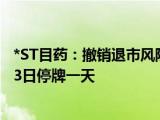 *ST目药公告,公司股票将于2024年6月13日停牌一天,6月14日起复牌,撤销退市风险警示并继续实施其他风险警示。股票简称由“*ST目药”变更为 浏览全文>>
