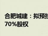 合肥城建公告,公司拟将所持有的控股子公司肥西康居城市运营管理有限公司(“肥西康居”)70%股权通过合肥市产权交易中心进行预挂牌。文章转 浏览全文>>