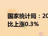 据国家统计局消息,2024年5月份居民消费价格同比上涨0 3%。2024年5月份,全国居民消费价格同比上涨0 3%。其中,城市上涨0 3%,农村上涨0 4% 浏览全文>>