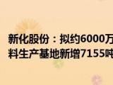 新化股份6月11日晚间公告,基于公司战略发展及业务需要,公司拟建设“宁夏新化化工有限公司合成香料生产基地新增7155吨 年产品建设项目”, 浏览全文>>