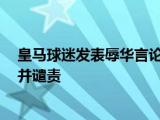 皇马球迷发表辱华言论 中使馆回应驻西班牙大使馆对皇家马德里足球俱乐部中个别球迷发表的不当辱华言论表达了深切的关注。这些言论不仅粗俗 浏览全文>>