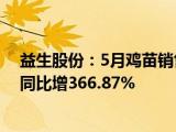 益生股份公告,2024年5月公司白羽肉鸡苗销售数量5083 98万只,销售收入1 96亿元,同比分别下降18 17%和18 21%,环比分别增长15 22%和28 51% 浏览全文>>