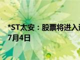 *ST太安公告,公司股票将于6月14日进入退市整理期交易,预计最后交易日期为7月4日。股票进入退市整理期的首个交易日不实行价格涨跌幅限制, 浏览全文>>