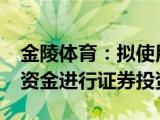 金陵体育公告,拟使用不超过5,000 00万元的暂时闲置自有资金进行证券投资,以提高公司资金使用效率,增强公司的盈利水平。文章转载自:互联 浏览全文>>