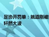 6月4日,中国足协宣布了对泰安天贶足球俱乐部球员姚道刚的处罚决定。在一场赛事中,姚道刚因不满裁判判决,不仅推搡辱骂裁判,被红牌罚下, 浏览全文>>
