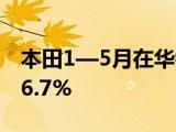 本田中国6月5日公布,2024年5月本田在中国的终端汽车累计销量为66202辆;1—5月本田在中国的终端汽车累计销量为346940辆,同比下降16 7%。( 浏览全文>>