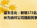 蓝丰生化公告,公司于近日收到南京中院送达的《民事起诉状》等有关诉讼材料,涉及新增172名自然人投资者以证券虚假陈述责任纠纷为由对公司 浏览全文>>