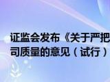 【证监会发布《关于严把发行上市准入关从源头上提高上市公司质量的意见(试行)》等四项政策文件】大家可以一起来了解一下这是什么情况! 浏览全文>>