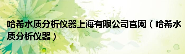 哈希水质分析仪器上海有限公司官网(哈希水质分析仪器)