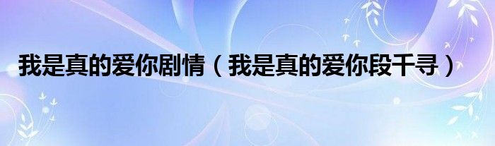 大家好,小范来为大家解答以上的问题。我是真的爱你剧情,我是真的爱你段千寻这个很多人还不知道,现在让我们一起来看看吧!