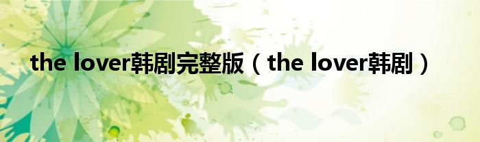 the lover韩剧完整版(the lover韩剧)