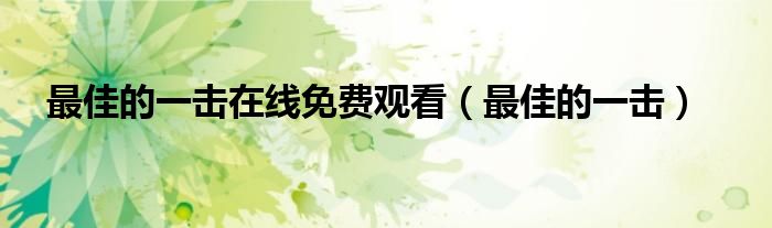 最佳的一击在线免费观看(最佳的一击)