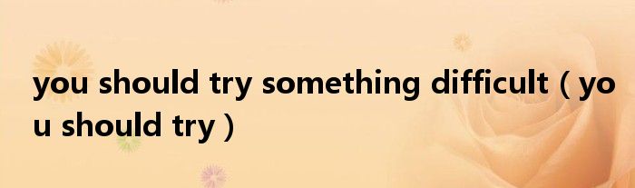 大家好,小范来为大家解答以上的问题。you should try something difficult,you should try这个很多人还不知道,现在让我们一起来看看吧!