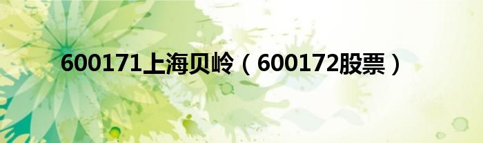 大家好,小范来为大家解答以上的问题。600171上海贝岭,600172股票这个很多人还不知道,现在让我们一起来看看吧!