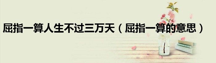 大家好,小范来为大家解答以上的问题。屈指一算人生不过三万天,屈指一算的意思这个很多人还不知道,现在让我们一起来看看吧!