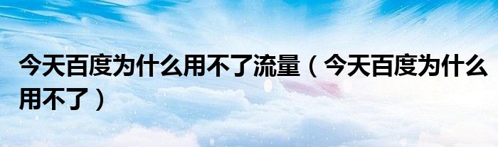 今天百度为什么用不了流量(今天百度为什么用不了)
