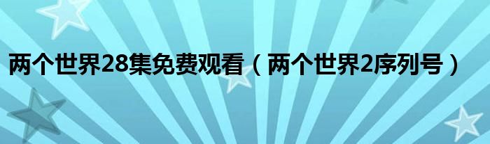大家好,小范来为大家解答以上的问题。两个世界28集免费观看,两个世界2序列号这个很多人还不知道,现在让我们一起来看看吧!
