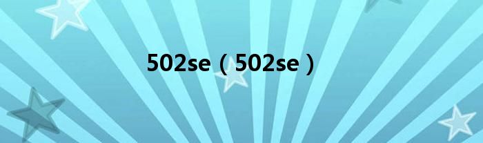 大家好,小范来为大家解答以上的问题。502se,502se这个很多人还不知道,现在让我们一起来看看吧!