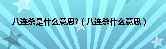 大家好,小范来为大家解答以上的问题。八连杀是什么意思?,八连杀什么意思这个很多人还不知道,现在让我们一起来看看吧!