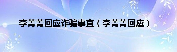 大家好,小范来为大家解答以上的问题。李菁菁回应诈骗事宜,李菁菁回应这个很多人还不知道,现在让我们一起来看看吧!
