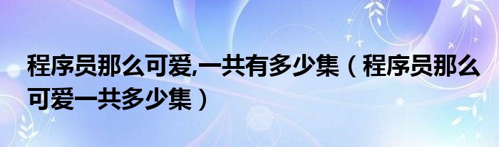 程序员那么可爱,一共有多少集(程序员那么可爱一共多少集)