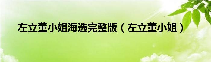 大家好,小范来为大家解答以上的问题。左立董小姐海选完整版,左立董小姐这个很多人还不知道,现在让我们一起来看看吧!