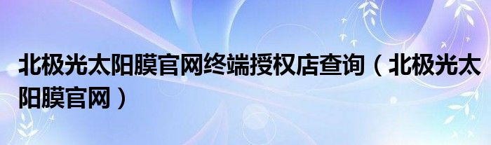 北极光太阳膜官网终端授权店查询(北极光太阳膜官网)