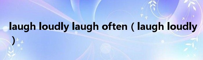 大家好,我是小跳,我来为大家解答以上问题。laugh loudly laugh often,laugh loudly很多人还不知道,现在让我们一起来看看吧!