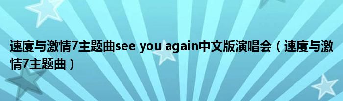 速度与激情7主题曲see you again中文版演唱会(速度与激情7主题曲)