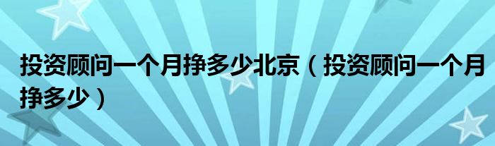 投资顾问一个月挣多少北京(投资顾问一个月挣多少)