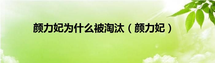大家好,小范来为大家解答以上的问题。颜力妃为什么被淘汰,颜力妃这个很多人还不知道,现在让我们一起来看看吧!