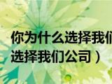 大家好,小范来为大家解答以上的问题。你为什么选择我们公司高情商回答,你为什么选择我们公司这个很多人还不知道,现在让我们一起来看看吧! 浏览全文>>