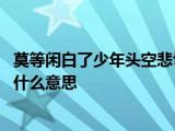 大家好,小知来为大家解答以上问题。莫等闲白了少年头空悲切的含义,莫等闲白了少年头空悲切是什么意思,这个很多人还不知道,现在让我们一 浏览全文>>