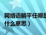 大家好,小知来为大家解答以上问题。网络语躺平任嘲是什么意思,网络用语躺平是什么意思这个很多人还不知道,现在让我们一起来看看吧! 解 浏览全文>>