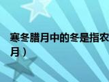 大家好,小知来为大家解答以上问题。寒冬腊月中的冬是指农历的几月,寒冬腊月的冬是指农历几月这个很多人还不知道,现在让我们一起来看看吧 浏览全文>>