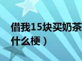 大家好,小知来为大家解答以上问题。借我15块买奶茶是什么梗,借我20喝奶茶是什么梗这个很多人还不知道,现在让我们一起来看看吧! 解答:1 浏览全文>>