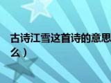 大家好,小知来为大家解答以上问题。古诗江雪这首诗的意思是什么,《江雪》古诗词的意思是什么这个很多人还不知道,现在让我们一起来看看吧 浏览全文>>