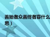 大家好,小知来为大家解答以上问题。善始者众善终者寡什么意思,“善始者众善终者寡”什么意思这个很多人还不知道,现在让我们一起来看看吧 浏览全文>>