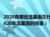 大家好,小知来为大家解答以上问题。2020有哪些流星雨在什么时候,2020年流星雨什么时候有2020年流星雨时间表这个很多人还不知道,现在让我 浏览全文>>