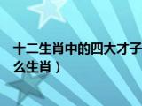 大家好,小知来为大家解答以上问题。十二生肖中的四大才子是哪四个,十二生肖的四大才子是什么生肖这个很多人还不知道,现在让我们一起来看 浏览全文>>