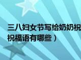 大家好,小知来为大家解答以上问题。三八妇女节写给奶奶祝福语怎么写,简短俏皮的三八妇女节祝福语有哪些这个很多人还不知道,现在让我们一 浏览全文>>