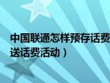 大家好,小知来为大家解答以上问题。中国联通怎样预存话费送话费,网上参加中国联通预存话费送话费活动这个很多人还不知道,现在让我们一起 浏览全文>>