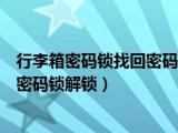 大家好,小知来为大家解答以上问题。行李箱密码锁找回密码,行李箱密码忘了怎么办图解行李箱密码锁解锁这个很多人还不知道,现在让我们一起 浏览全文>>