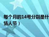 大家好,小知来为大家解答以上问题。每个月的14号分别是什么情人节,每个月的14号分别是什么情人节这个很多人还不知道,现在让我们一起来看 浏览全文>>
