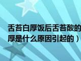 大家好,小知来为大家解答以上问题。舌苔白厚饭后舌苔酸的中医辨证,为什么舌苔会白厚舌苔白厚是什么原因引起的这个很多人还不知道,现在让 浏览全文>>
