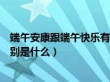 大家好,小知来为大家解答以上问题。端午安康跟端午快乐有什么区别,端午安康和端午快乐的区别是什么这个很多人还不知道,现在让我们一起来 浏览全文>>