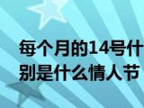 大家好,小知来为大家解答以上问题。每个月的14号什么情人节,每个月的14号分别是什么情人节这个很多人还不知道,现在让我们一起来看看吧! 浏览全文>>
