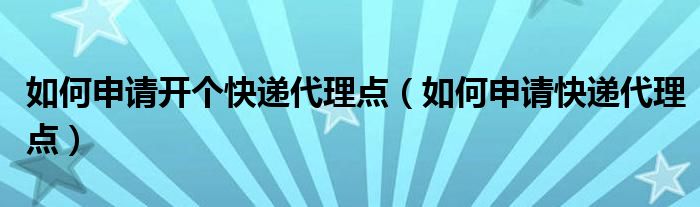 大家好,小知来为大家解答以上问题。如何申请开个快递代理点,如何申请快递代理点这个很多人还不知道,现在让我们一起来看看吧!