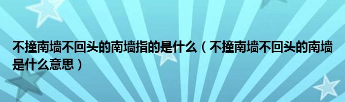 不撞南墙不回头的南墙指的是什么(不撞南墙不回头的南墙是什么意思)
